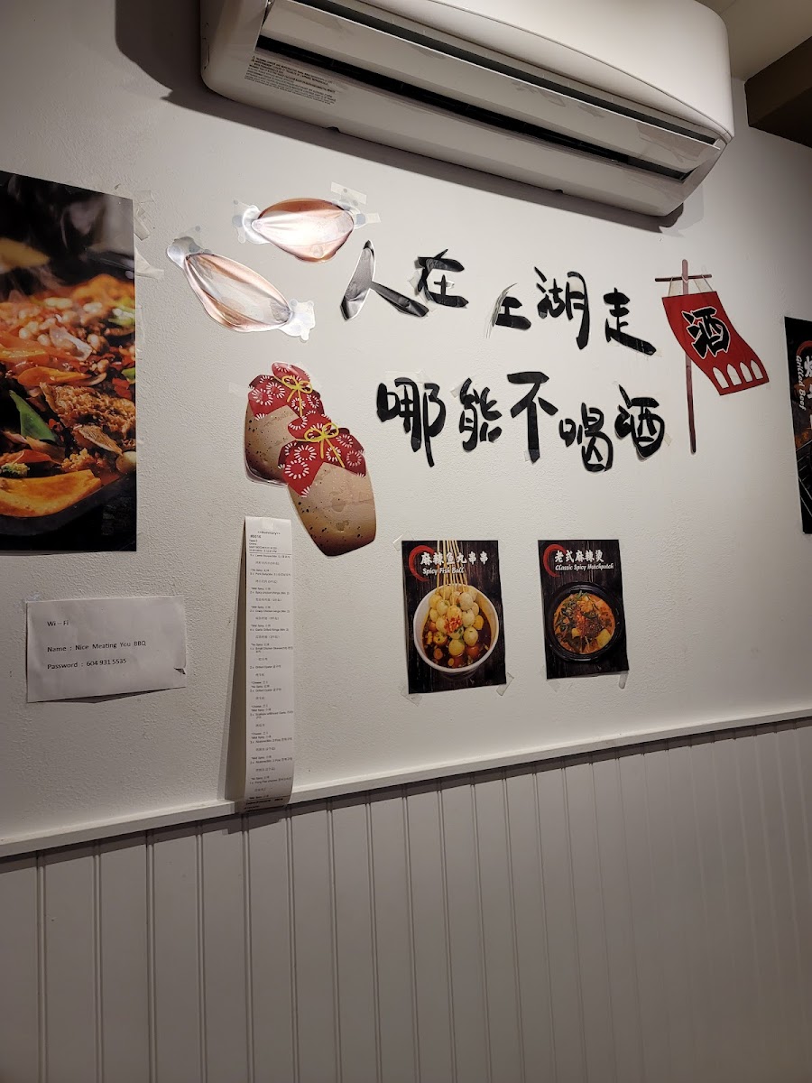 The moment you step into Nice Meating You BBQ, you're greeted by the warm aroma of grilled meats and spices mingling in the air. The dining atmosphere is casual yet energetic—perfect for a lively night out with friends or a cozy meal with family. Seating is primarily on stools, making it less of a lounge and more a vibrant spot for sharing delicious skewers and dishes, further heightened by each table’s unique hot plate, ensuring your food stays warm while you savor every bite.